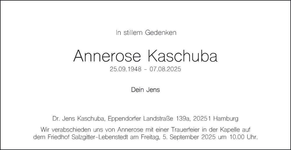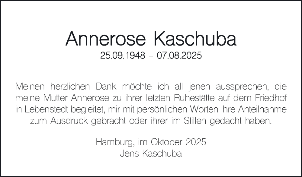 Hier finden Sie alle Traueranzeigen aus der Zeitung, die bisher für Annerose Kaschuba erschienen sind. Weitere Traueranzeigen, die in der Zeitung erscheinen, werden hier ebenfalls aufgelistet