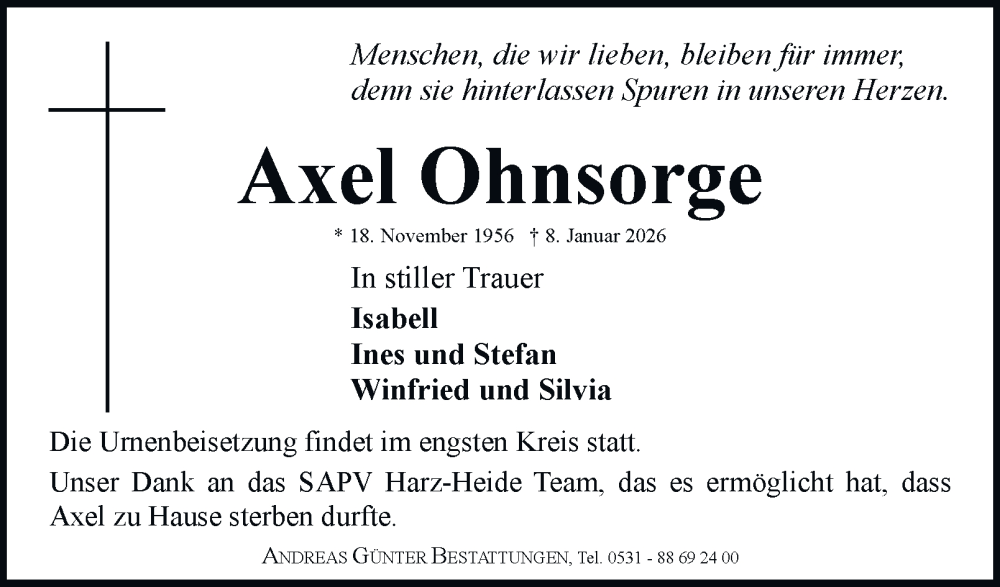 Hier finden Sie alle Traueranzeigen aus der Zeitung, die bisher für Axel Ohnsorge erschienen sind. Weitere Traueranzeigen, die in der Zeitung erscheinen, werden hier ebenfalls aufgelistet