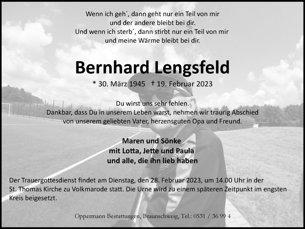 Hier finden Sie alle Traueranzeigen aus der Zeitung, die bisher für Bernhard Lengsfeld erschienen sind. Weitere Traueranzeigen, die in der Zeitung erscheinen, werden hier ebenfalls aufgelistet