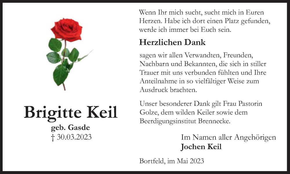 Hier finden Sie alle Traueranzeigen aus der Zeitung, die bisher für Brigitte Keil erschienen sind. Weitere Traueranzeigen, die in der Zeitung erscheinen, werden hier ebenfalls aufgelistet