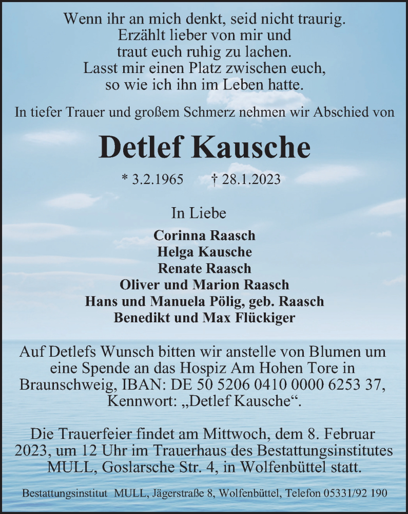 Hier finden Sie alle Traueranzeigen aus der Zeitung, die bisher für Detlef Kausche erschienen sind. Weitere Traueranzeigen, die in der Zeitung erscheinen, werden hier ebenfalls aufgelistet