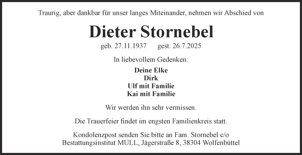Hier finden Sie alle Traueranzeigen aus der Zeitung, die bisher für Dieter Stornebel erschienen sind. Weitere Traueranzeigen, die in der Zeitung erscheinen, werden hier ebenfalls aufgelistet