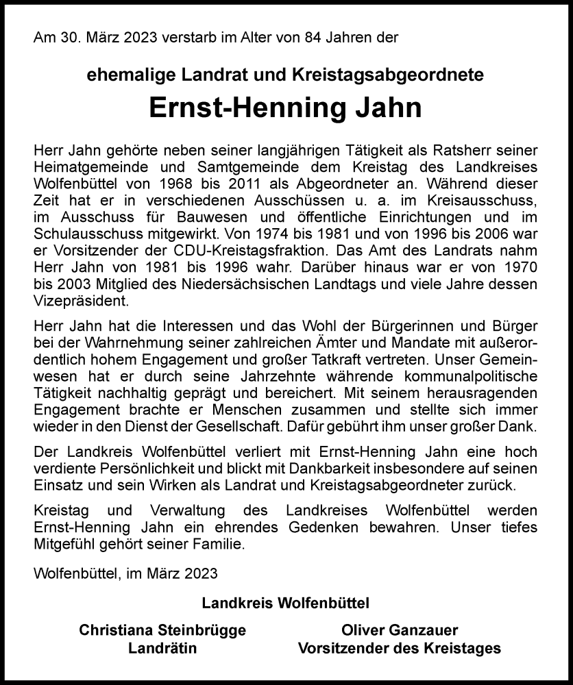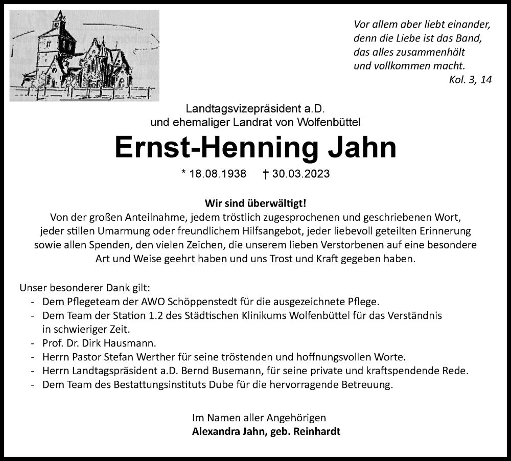 Hier finden Sie alle Traueranzeigen aus der Zeitung, die bisher für Ernst-Henning Jahn erschienen sind. Weitere Traueranzeigen, die in der Zeitung erscheinen, werden hier ebenfalls aufgelistet