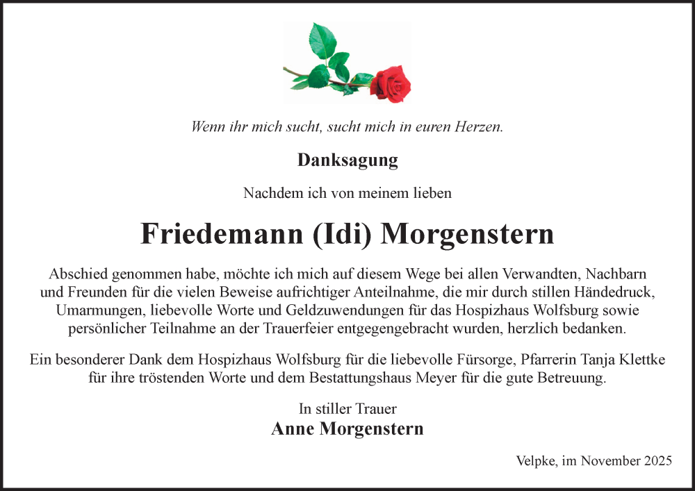 Hier finden Sie alle Traueranzeigen aus der Zeitung, die bisher für Friedemann Morgenstern erschienen sind. Weitere Traueranzeigen, die in der Zeitung erscheinen, werden hier ebenfalls aufgelistet