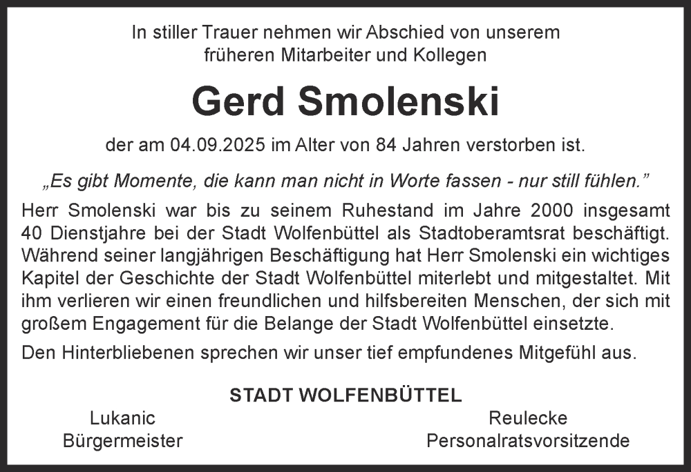 Hier finden Sie alle Traueranzeigen aus der Zeitung, die bisher für Gerd Smolenski erschienen sind. Weitere Traueranzeigen, die in der Zeitung erscheinen, werden hier ebenfalls aufgelistet