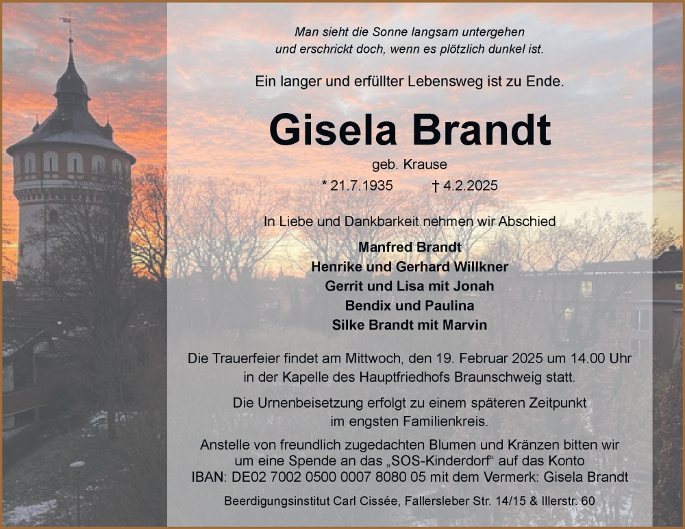Hier finden Sie alle Traueranzeigen aus der Zeitung, die bisher für Gisela Brandt erschienen sind. Weitere Traueranzeigen, die in der Zeitung erscheinen, werden hier ebenfalls aufgelistet