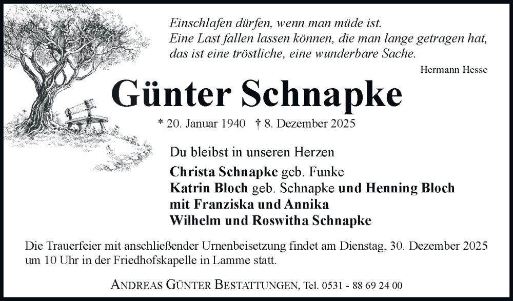 Hier finden Sie alle Traueranzeigen aus der Zeitung, die bisher für Günter Schnapke erschienen sind. Weitere Traueranzeigen, die in der Zeitung erscheinen, werden hier ebenfalls aufgelistet
