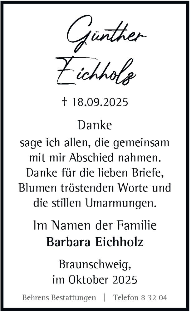 Hier finden Sie alle Traueranzeigen aus der Zeitung, die bisher für Günther Eichholz erschienen sind. Weitere Traueranzeigen, die in der Zeitung erscheinen, werden hier ebenfalls aufgelistet
