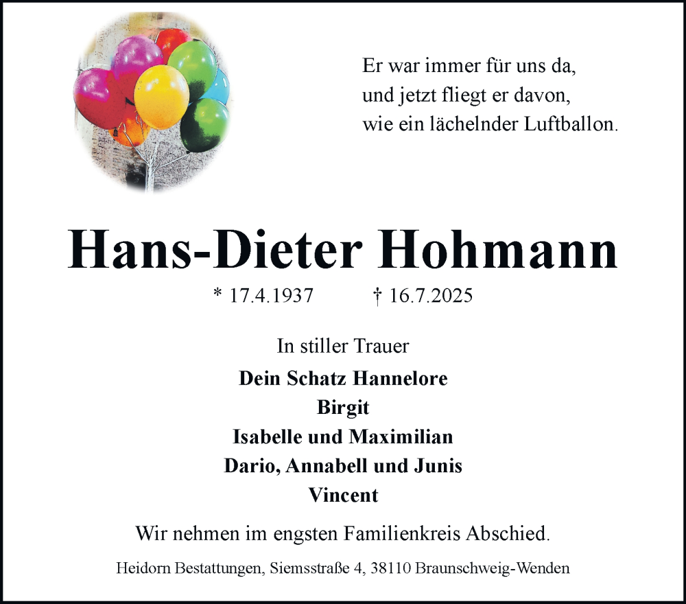 Hier finden Sie alle Traueranzeigen aus der Zeitung, die bisher für Hans-Dieter Hohmann erschienen sind. Weitere Traueranzeigen, die in der Zeitung erscheinen, werden hier ebenfalls aufgelistet