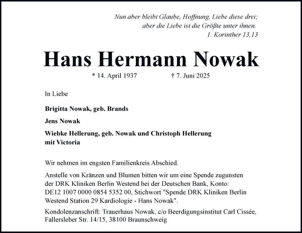 Hier finden Sie alle Traueranzeigen aus der Zeitung, die bisher für Hans Hermann Nowak erschienen sind. Weitere Traueranzeigen, die in der Zeitung erscheinen, werden hier ebenfalls aufgelistet