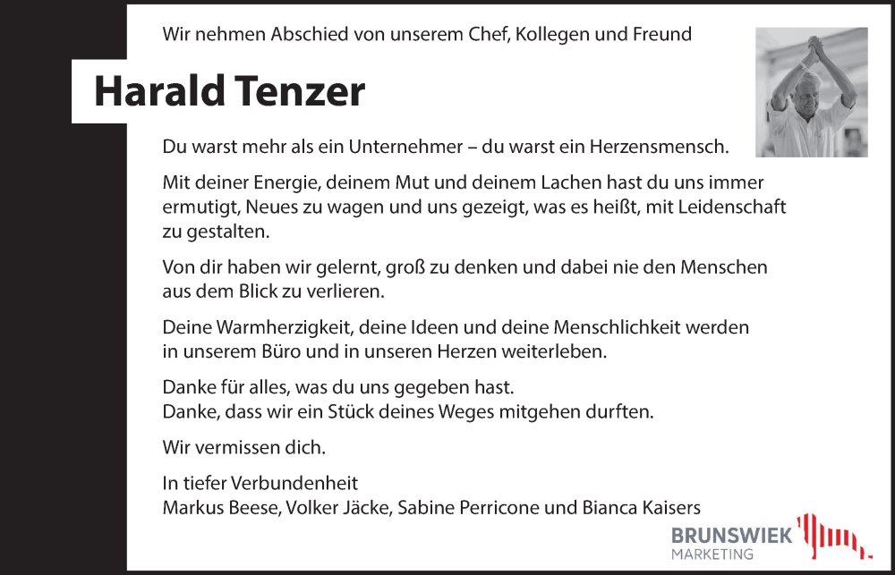 Hier finden Sie alle Traueranzeigen aus der Zeitung, die bisher für Harald Tenzer erschienen sind. Weitere Traueranzeigen, die in der Zeitung erscheinen, werden hier ebenfalls aufgelistet