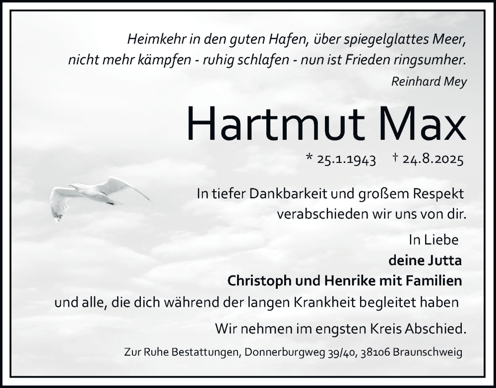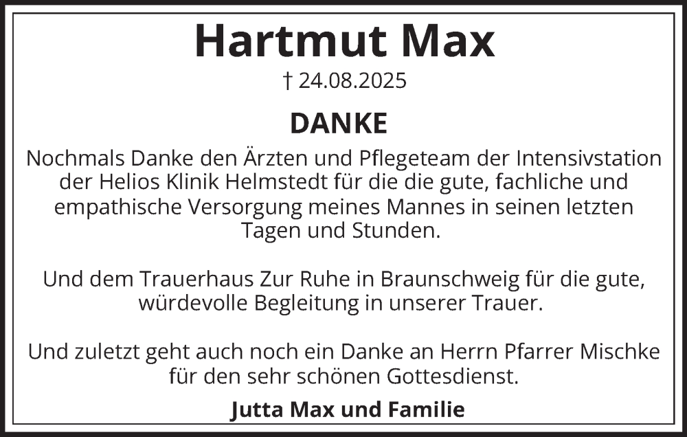 Hier finden Sie alle Traueranzeigen aus der Zeitung, die bisher für Hartmut Max erschienen sind. Weitere Traueranzeigen, die in der Zeitung erscheinen, werden hier ebenfalls aufgelistet
