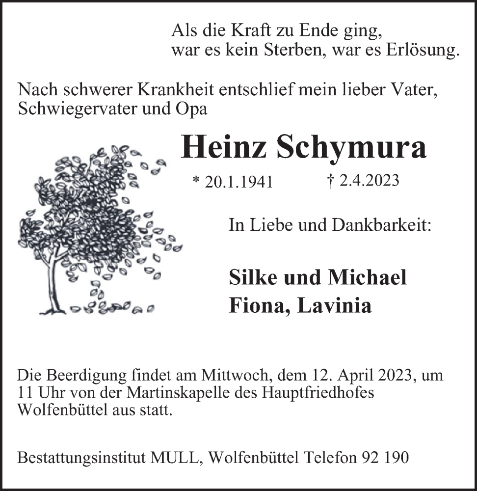 Hier finden Sie alle Traueranzeigen aus der Zeitung, die bisher für Heinz Schymura erschienen sind. Weitere Traueranzeigen, die in der Zeitung erscheinen, werden hier ebenfalls aufgelistet