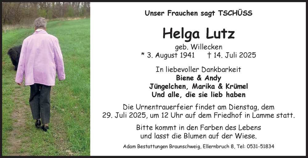 Hier finden Sie alle Traueranzeigen aus der Zeitung, die bisher für Helga Lutz erschienen sind. Weitere Traueranzeigen, die in der Zeitung erscheinen, werden hier ebenfalls aufgelistet