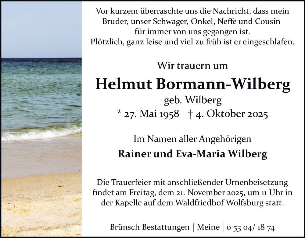 Hier finden Sie alle Traueranzeigen aus der Zeitung, die bisher für Helmut Bormann-Wilberg erschienen sind. Weitere Traueranzeigen, die in der Zeitung erscheinen, werden hier ebenfalls aufgelistet