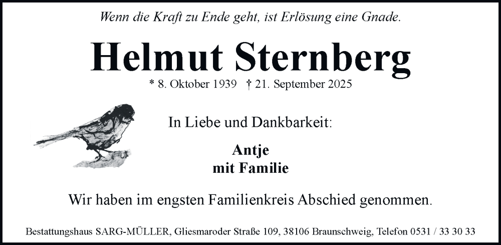 Hier finden Sie alle Traueranzeigen aus der Zeitung, die bisher für Helmut Sternberg erschienen sind. Weitere Traueranzeigen, die in der Zeitung erscheinen, werden hier ebenfalls aufgelistet