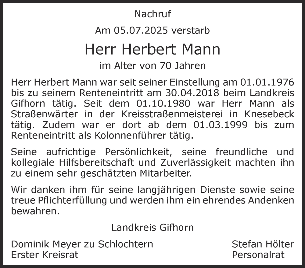 Hier finden Sie alle Traueranzeigen aus der Zeitung, die bisher für Herbert Mann erschienen sind. Weitere Traueranzeigen, die in der Zeitung erscheinen, werden hier ebenfalls aufgelistet