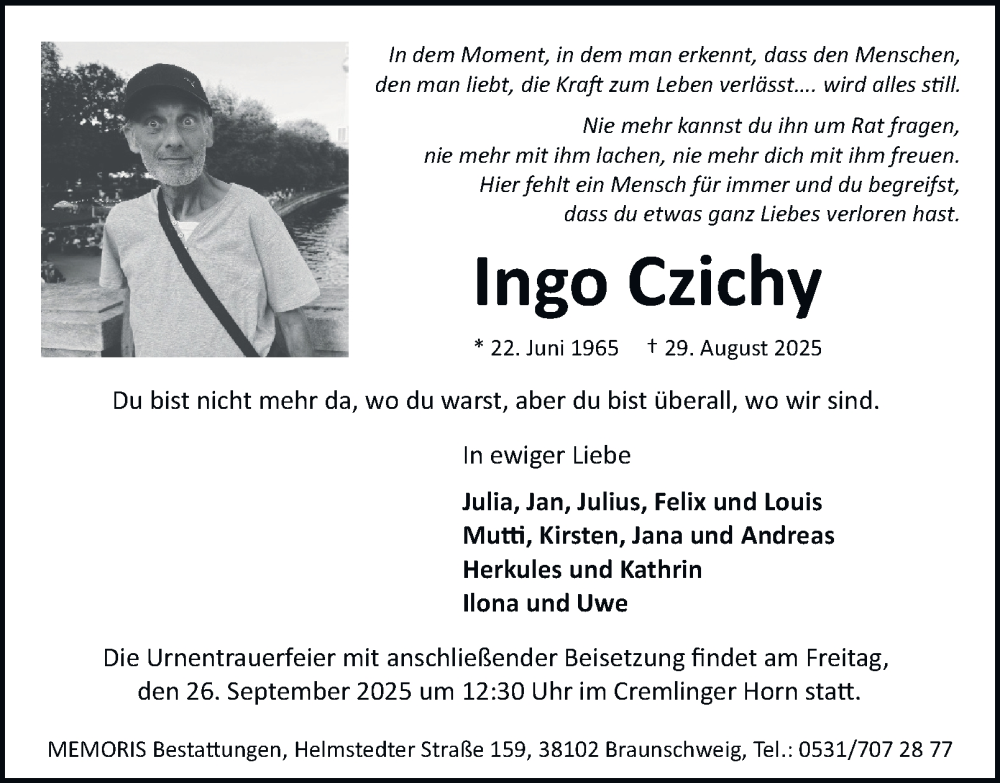 Hier finden Sie alle Traueranzeigen aus der Zeitung, die bisher für Ingo Czichy erschienen sind. Weitere Traueranzeigen, die in der Zeitung erscheinen, werden hier ebenfalls aufgelistet