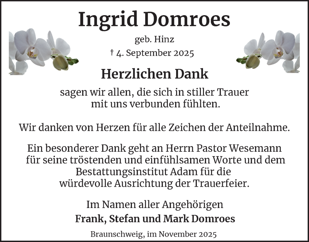 Hier finden Sie alle Traueranzeigen aus der Zeitung, die bisher für Ingrid Domroes erschienen sind. Weitere Traueranzeigen, die in der Zeitung erscheinen, werden hier ebenfalls aufgelistet