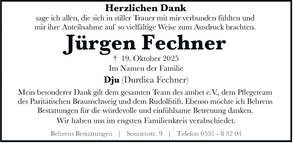 Hier finden Sie alle Traueranzeigen aus der Zeitung, die bisher für Jürgen Fechner erschienen sind. Weitere Traueranzeigen, die in der Zeitung erscheinen, werden hier ebenfalls aufgelistet