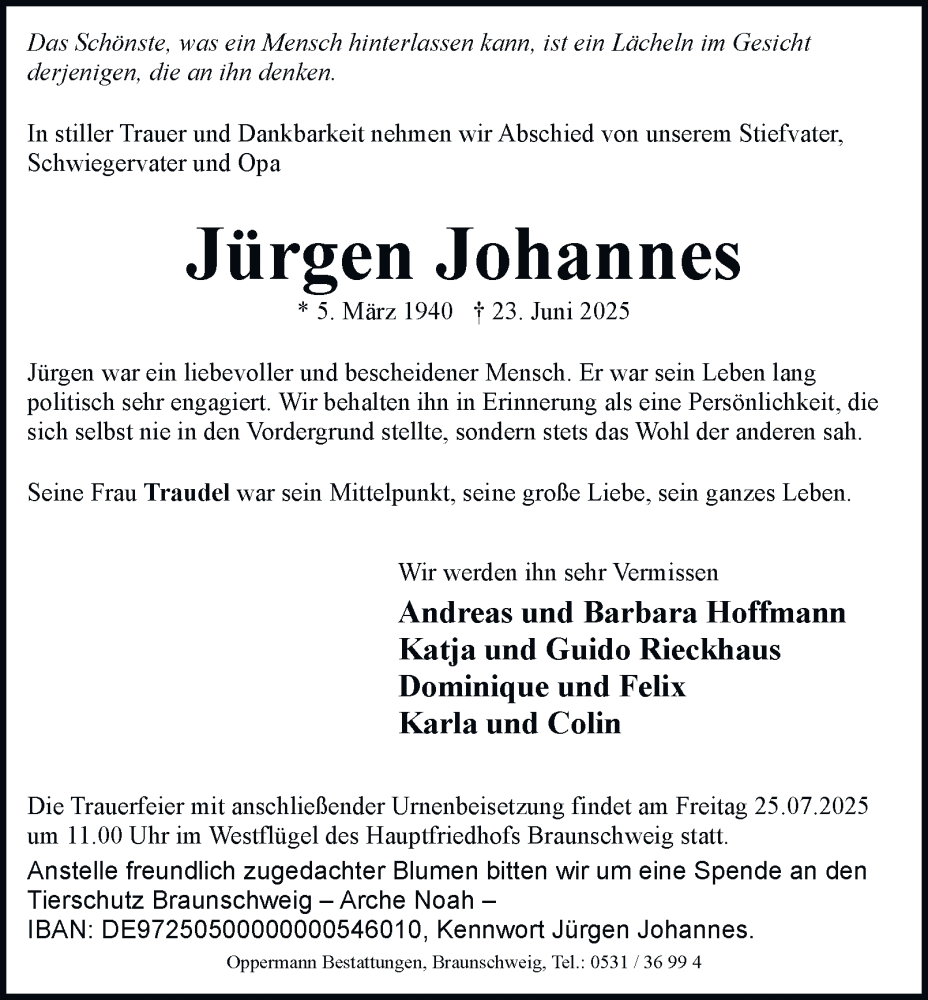 Hier finden Sie alle Traueranzeigen aus der Zeitung, die bisher für Jürgen Johannes erschienen sind. Weitere Traueranzeigen, die in der Zeitung erscheinen, werden hier ebenfalls aufgelistet
