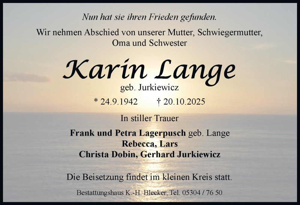Hier finden Sie alle Traueranzeigen aus der Zeitung, die bisher für Karin Lange erschienen sind. Weitere Traueranzeigen, die in der Zeitung erscheinen, werden hier ebenfalls aufgelistet