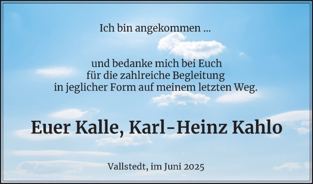 Hier finden Sie alle Traueranzeigen aus der Zeitung, die bisher für Karl-Heinz Kahlo erschienen sind. Weitere Traueranzeigen, die in der Zeitung erscheinen, werden hier ebenfalls aufgelistet