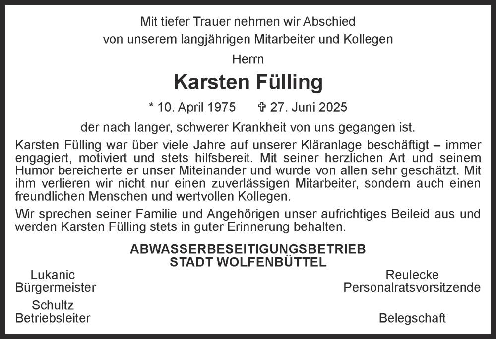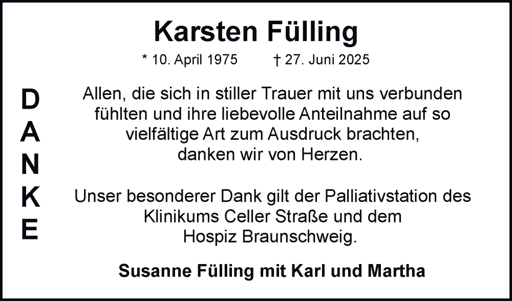 Hier finden Sie alle Traueranzeigen aus der Zeitung, die bisher für Karsten Fülling erschienen sind. Weitere Traueranzeigen, die in der Zeitung erscheinen, werden hier ebenfalls aufgelistet