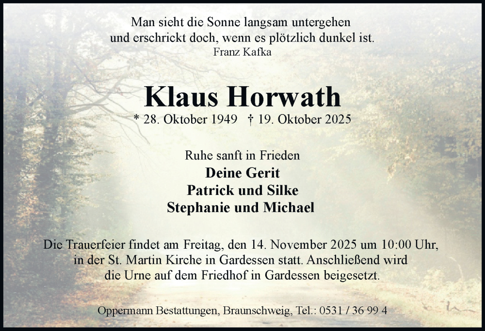 Hier finden Sie alle Traueranzeigen aus der Zeitung, die bisher für Klaus Horwath erschienen sind. Weitere Traueranzeigen, die in der Zeitung erscheinen, werden hier ebenfalls aufgelistet
