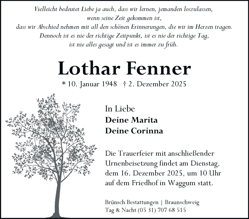 Hier finden Sie alle Traueranzeigen aus der Zeitung, die bisher für Lothar Fenner erschienen sind. Weitere Traueranzeigen, die in der Zeitung erscheinen, werden hier ebenfalls aufgelistet