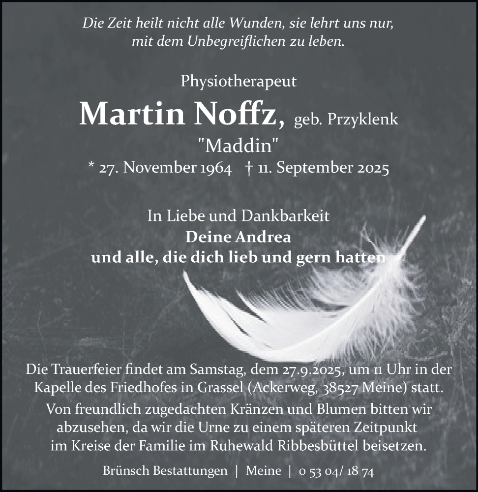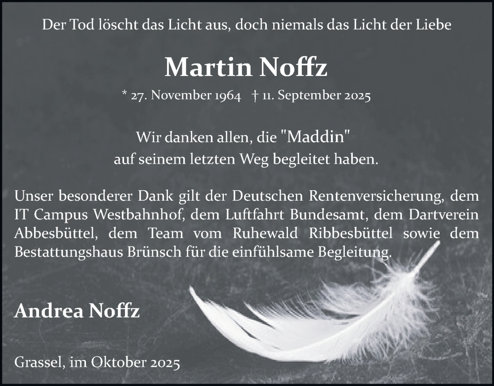 Hier finden Sie alle Traueranzeigen aus der Zeitung, die bisher für Martin Noffz erschienen sind. Weitere Traueranzeigen, die in der Zeitung erscheinen, werden hier ebenfalls aufgelistet