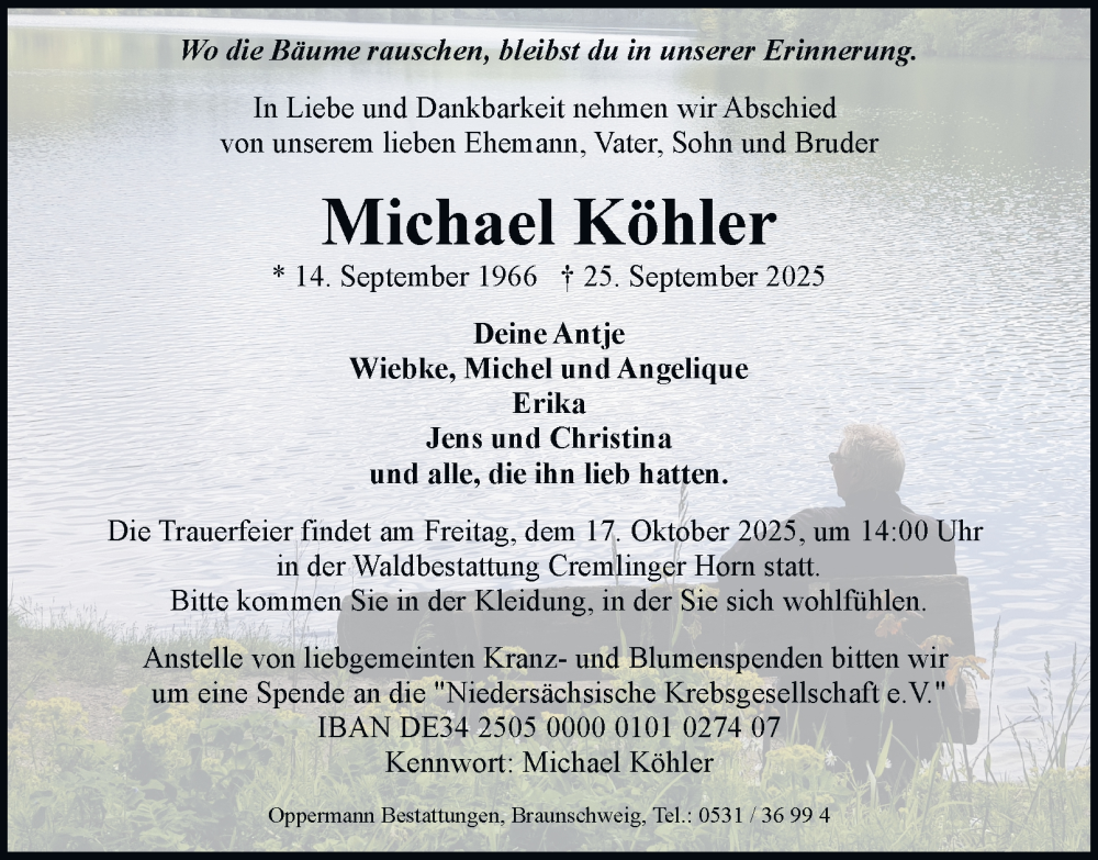 Hier finden Sie alle Traueranzeigen aus der Zeitung, die bisher für Michael Köhler erschienen sind. Weitere Traueranzeigen, die in der Zeitung erscheinen, werden hier ebenfalls aufgelistet