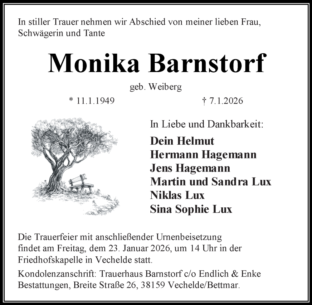 Hier finden Sie alle Traueranzeigen aus der Zeitung, die bisher für Monika Barnstorf erschienen sind. Weitere Traueranzeigen, die in der Zeitung erscheinen, werden hier ebenfalls aufgelistet