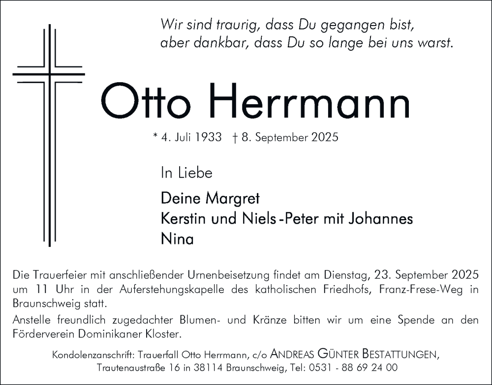 Hier finden Sie alle Traueranzeigen aus der Zeitung, die bisher für Otto Herrmann erschienen sind. Weitere Traueranzeigen, die in der Zeitung erscheinen, werden hier ebenfalls aufgelistet