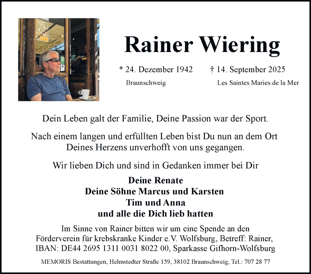 Hier finden Sie alle Traueranzeigen aus der Zeitung, die bisher für Rainer Wiering erschienen sind. Weitere Traueranzeigen, die in der Zeitung erscheinen, werden hier ebenfalls aufgelistet