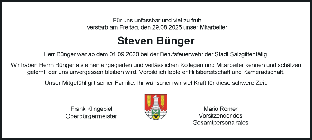 Hier finden Sie alle Traueranzeigen aus der Zeitung, die bisher für Steven Bünger erschienen sind. Weitere Traueranzeigen, die in der Zeitung erscheinen, werden hier ebenfalls aufgelistet