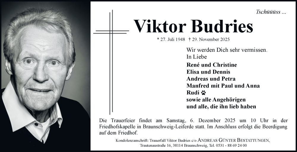Hier finden Sie alle Traueranzeigen aus der Zeitung, die bisher für Viktor Budries erschienen sind. Weitere Traueranzeigen, die in der Zeitung erscheinen, werden hier ebenfalls aufgelistet