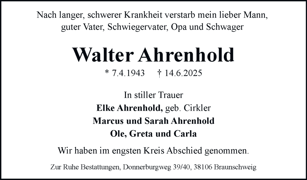 Hier finden Sie alle Traueranzeigen aus der Zeitung, die bisher für Walter Ahrenhold erschienen sind. Weitere Traueranzeigen, die in der Zeitung erscheinen, werden hier ebenfalls aufgelistet