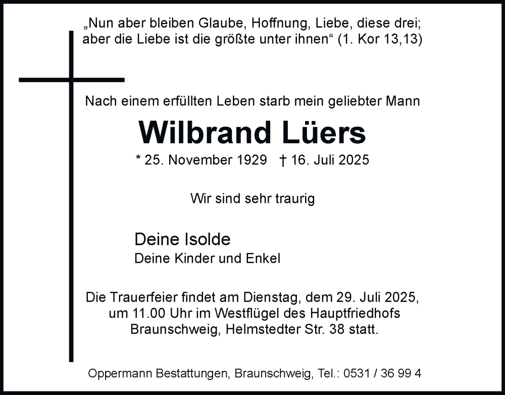 Hier finden Sie alle Traueranzeigen aus der Zeitung, die bisher für Wilbrand Lüers erschienen sind. Weitere Traueranzeigen, die in der Zeitung erscheinen, werden hier ebenfalls aufgelistet