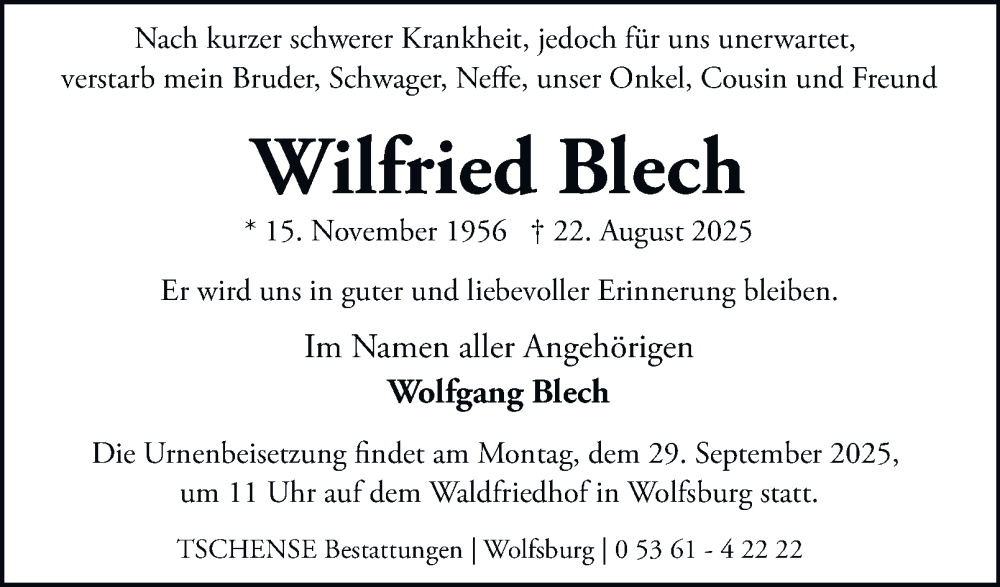 Hier finden Sie alle Traueranzeigen aus der Zeitung, die bisher für Wilfried Blech erschienen sind. Weitere Traueranzeigen, die in der Zeitung erscheinen, werden hier ebenfalls aufgelistet